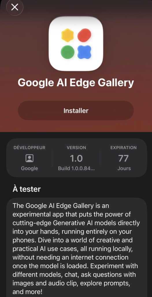 Google AI Edge Gallery (Github : https://github.com/google-ai-edge/gallery, liens directs iOS dans Testflight et Android via le Play Store) est une...