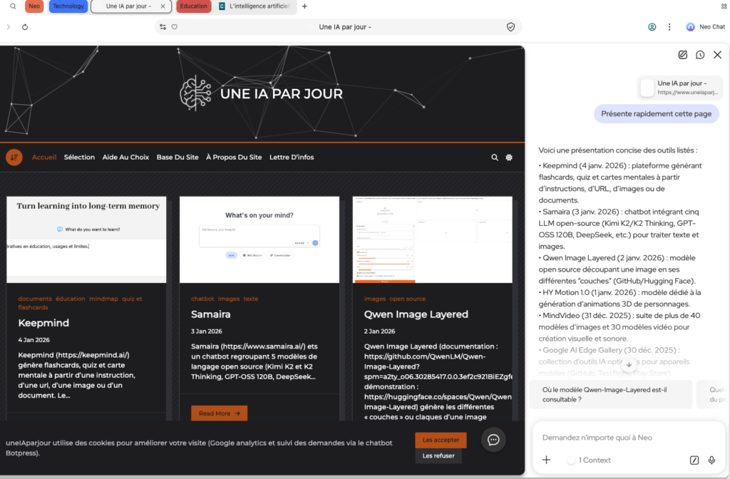Neo (neobrowser.ai) est un navigateur proposé par Norton avec options de sécurité intégrées (norton webshield, bloqueur de publicité, pas de...