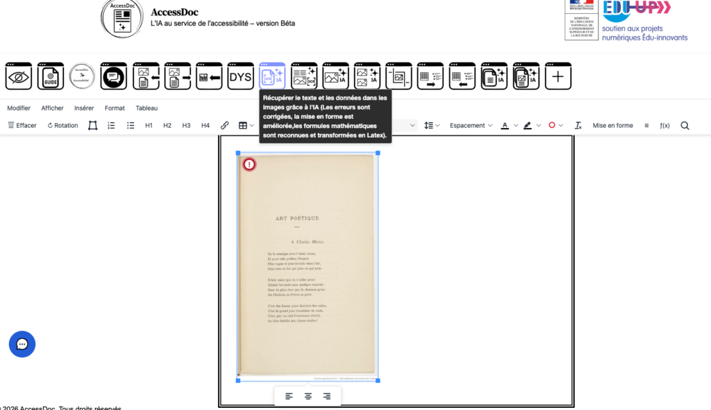 Accessdoc (https://accessdoc.fr/) propose, dans une interface type traitement de texte, un ensemble d’outils pour rendre un document accessible ou vérifier...