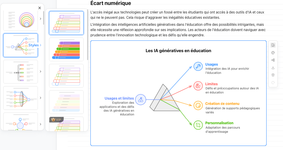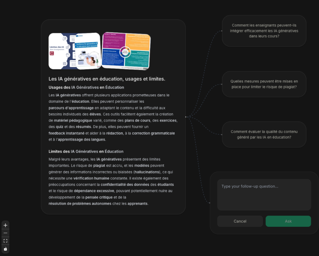 Mindmaclasse (https://apps4edu.fr/mindmaclasse/) génère des cartes mentales à partir d’une instruction ou d’un document ainsi que des exercices pour réviser (quiz,...