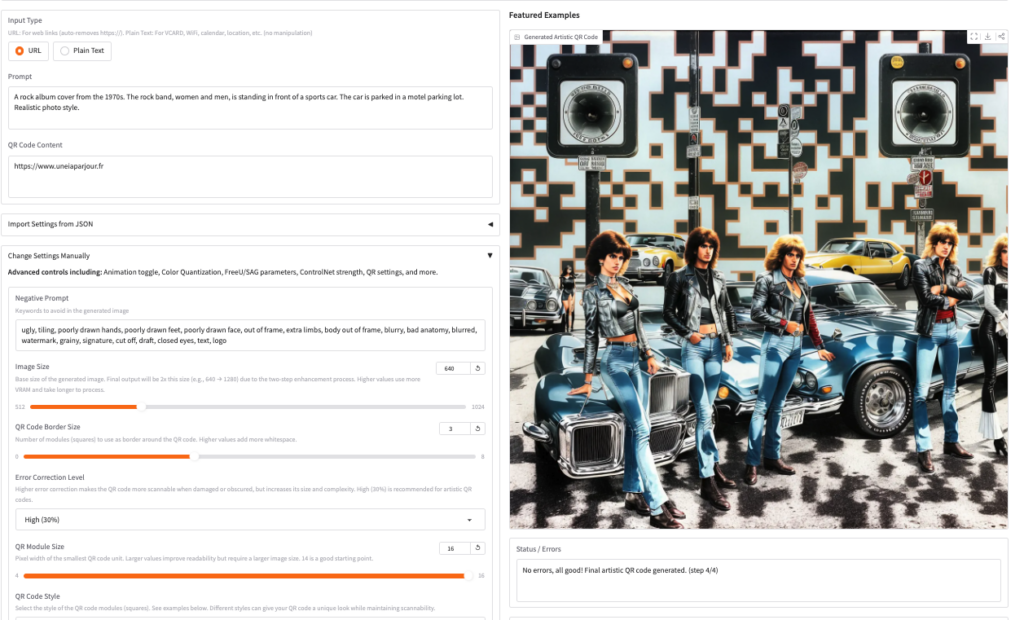 QR Code Art Generator (https://huggingface.co/spaces/Oysiyl/AI-QR-code-generator) génère des QR code « artistiques » et photoréalistes à partir d’une instruction. Réglages multiples disponibles. Accepte...
