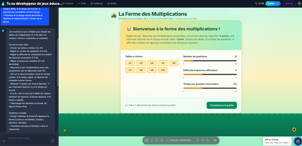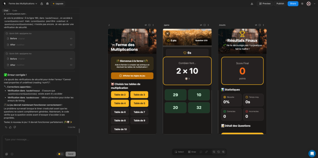 Wacka (https://whacka.app) génère des applications au format mobile disponibles en ligne à partir d’une instruction et d’un chatbot. Pas d’export...
