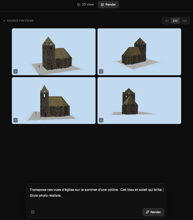Intangible (https://studio.intangible.ai) génère des scènes 3D à partir d’une image. Une fois la scène générée, l’utilisateur prend des capture ave...