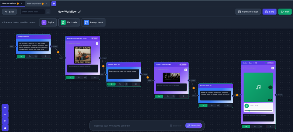 VoooAI (https://voooai.com/) génère des images, vidéos et morceaux de musique à partir d’un flux de production (« workflow ») : une instruction...