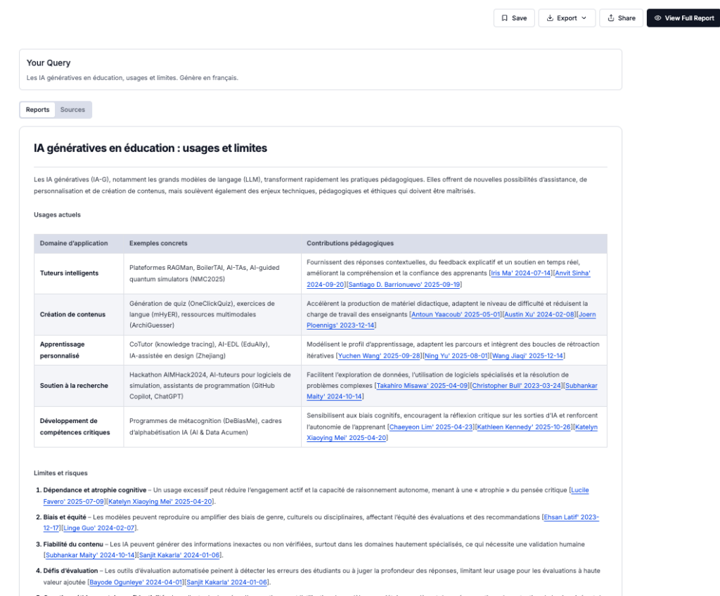 Deep scholar (https://deep-scholar.vercel.app, basé sur Lotus, open source : https://github.com/lotus-data/lotus) est un moteur de recherche sémantique couplé à un modèle...
