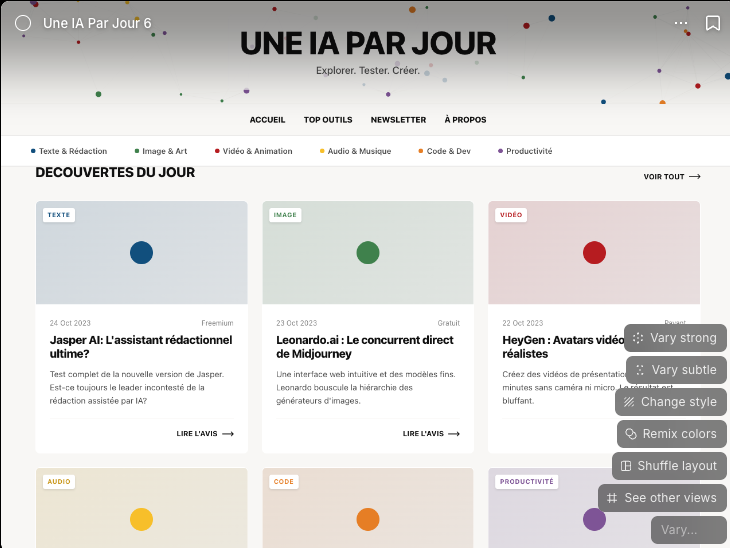 Variant (https://variant.com/) génère des designs de sites ou d’applications à partir d’une instruction. 6 designs sont générés par instruction. et...