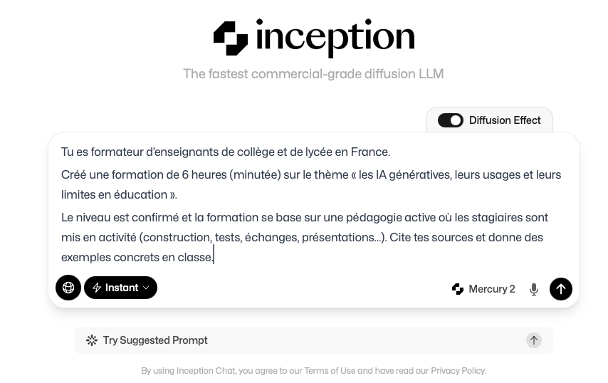 Mercury 2 (description https://www.inceptionlabs.ai/blog/introducing-mercury-2 : et démonstration : https://chat.inceptionlabs.ai/) est le premier modèle de génération de texte basé sur la...