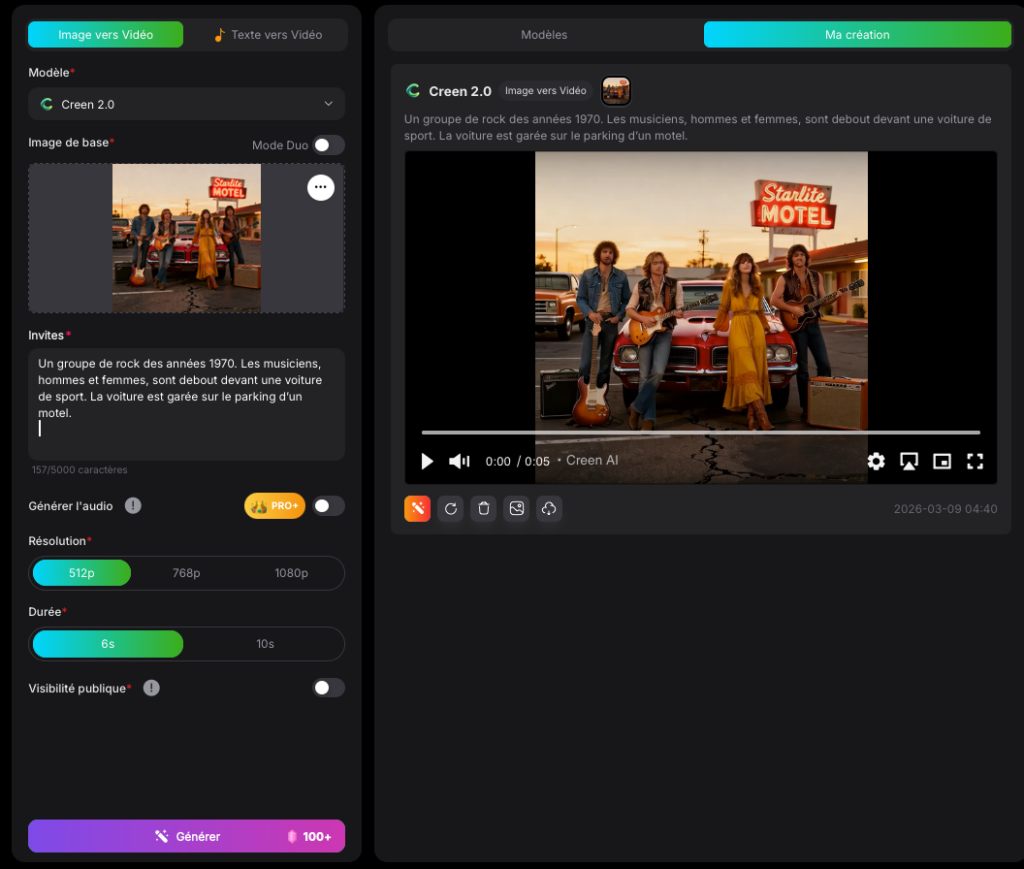 Creen (https://www.creen.ai) génère images et vidéos à partir d’une instruction ou d’images. Trois modèles pour la générationd ‘images (Creen /...