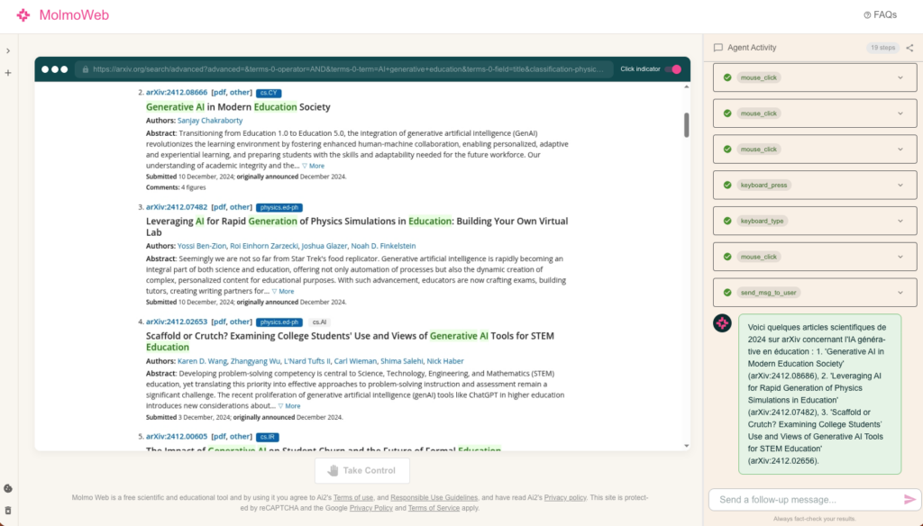 Molmo Web (Documentation : https://allenai.org/blog/molmoweb et démonstration : https://molmoweb.allen.ai/) est un agent web qui automatise une recherche internet commandée par...
