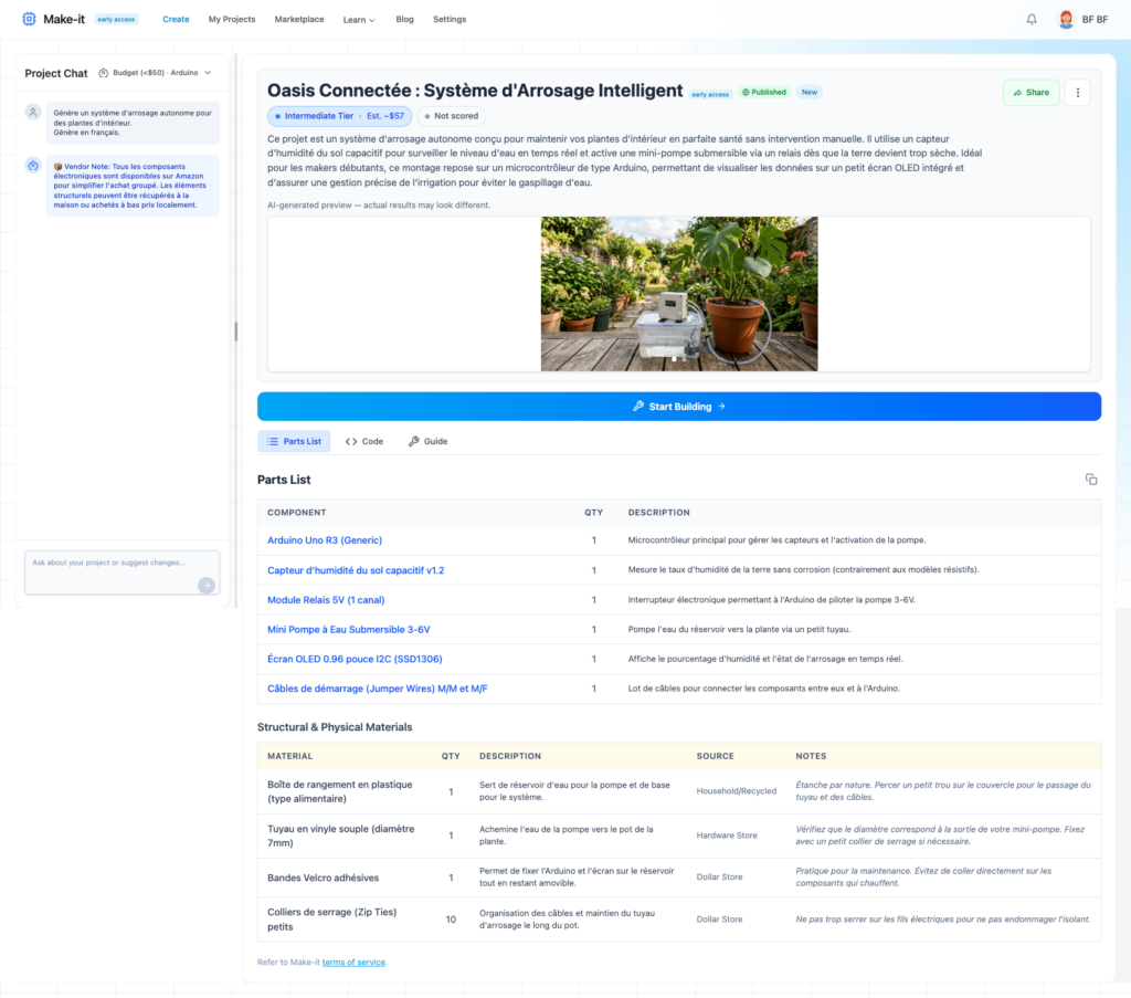 Make it (https://make-it.ai) transforme des idées d’objets techniques à fabriquer soi-même en projet documenté, de la liste des matériels au...