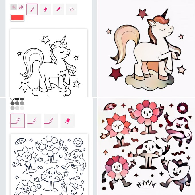 Petalica (https://petalica.com) colorise des dessins en noir et blanc avec trois styles proposés Possibilité de sélection et choix de couleurs par zones ou délimitation. Sans compte et illimité. Sources images : Freepik.