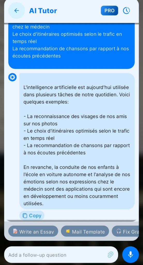 Photosolve (https://photosolve.io) propose de résoudre des exercices scolaires à partir d’une photo prise et d’expliquer la réponse. Un chatbot généraliste est également présent avec reconnaissance d’images. 20 requêtes gratuites puis 3 par jour.
