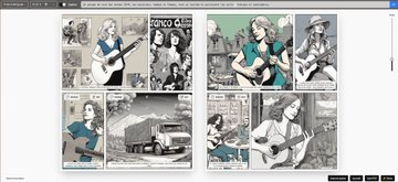 AI Comic Factory (https://huggingface.co/spaces/jbilcke-hf/ai-comic-factory) créé 2 planches de BD à partir d’un prompt, d’un style et d’un choix de gabarit. Français si spécifié. Édition, avec ou sans bulles, export pdf. Open source et illimité. Via @j0annamarques et @nicolasbannier