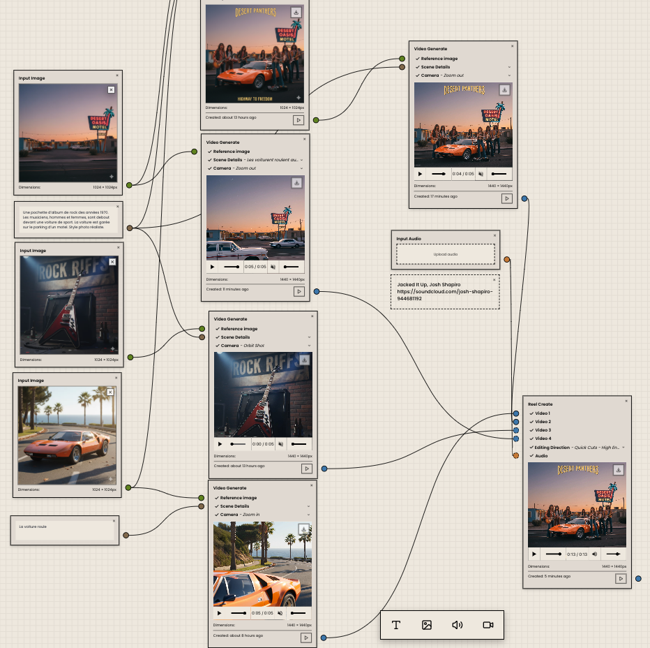 Anpo (https://anpo.ai) génère images, vidéos et réels à partir d’images, de textes d’audio générés ou importés sur un tableau « infini ».