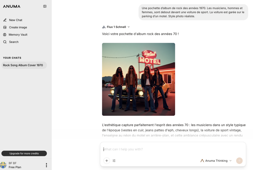 Anuma (https://www.anuma.ai/) est un chatbot texte et image intégrant plusieurs modèles dans deux modes : privé et public.