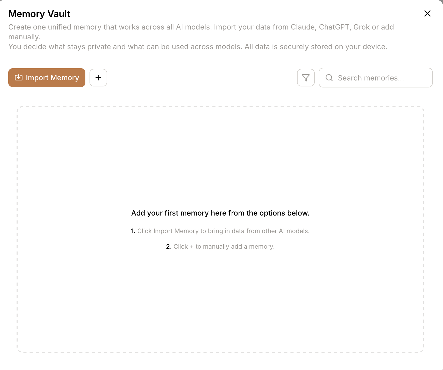 « Memory Vault » permet l’importation des historiques d’autres applications pour constituer une base de connaissance commune à l’ensemble des modèles présents.