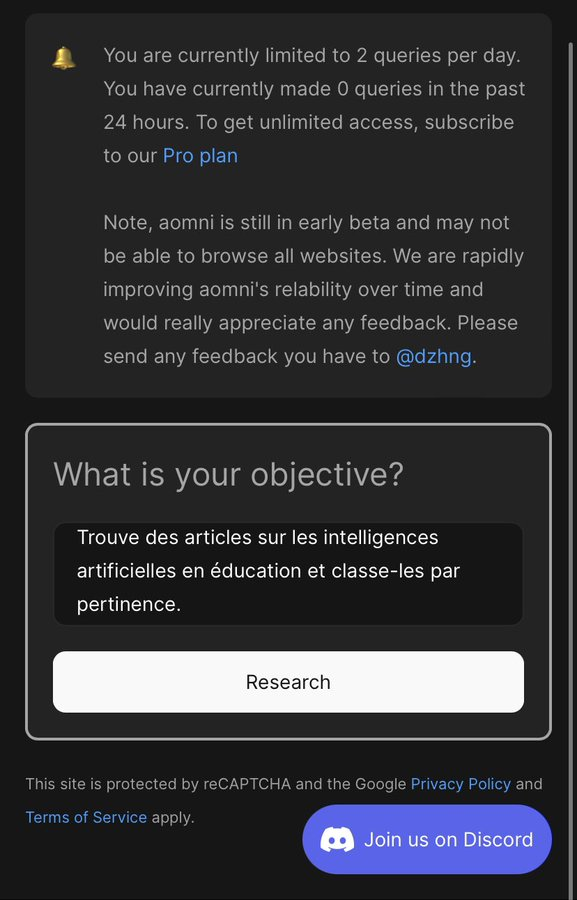 Et si ChatGPT 4 et autoGPT étaient dans un même outil pour devenir un assistant de recherche web, classer, résumer, partager, etc. ? C’est ce que propose http://aomni.com ! Test sur l’IA en éducation ici : https://aomni.com/search/0e4d0e44-1195-46ed-b33d-9e8c484ffbf6…