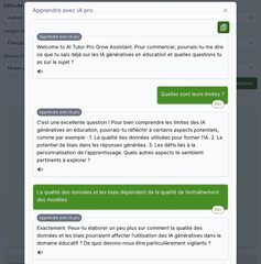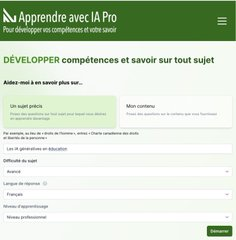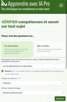 Apprendre avec IA (https://apprendreaveciapro.ca) propose deux chatbots pour «vérifier» ou «développer ses compétences et savoir». Développé par @ContactNorth et basé sur GPT 4, disponible en 19 langues et 4 niveaux d’apprentissage, sans compte et illimité.