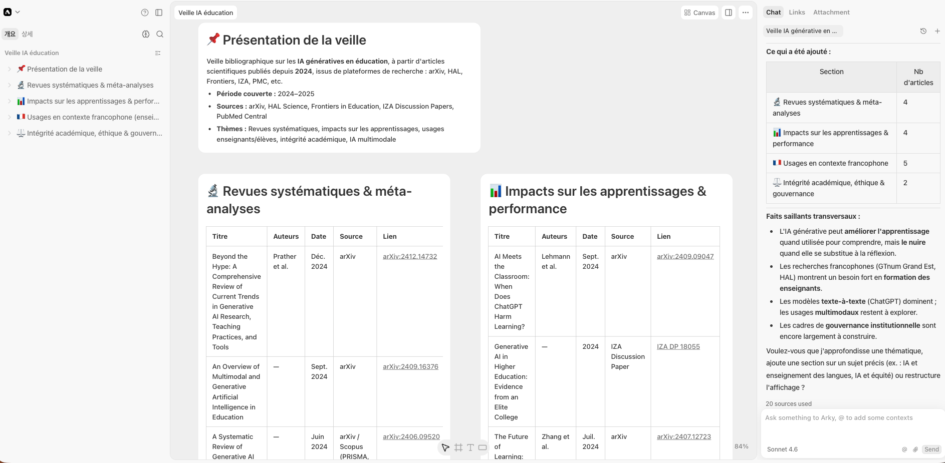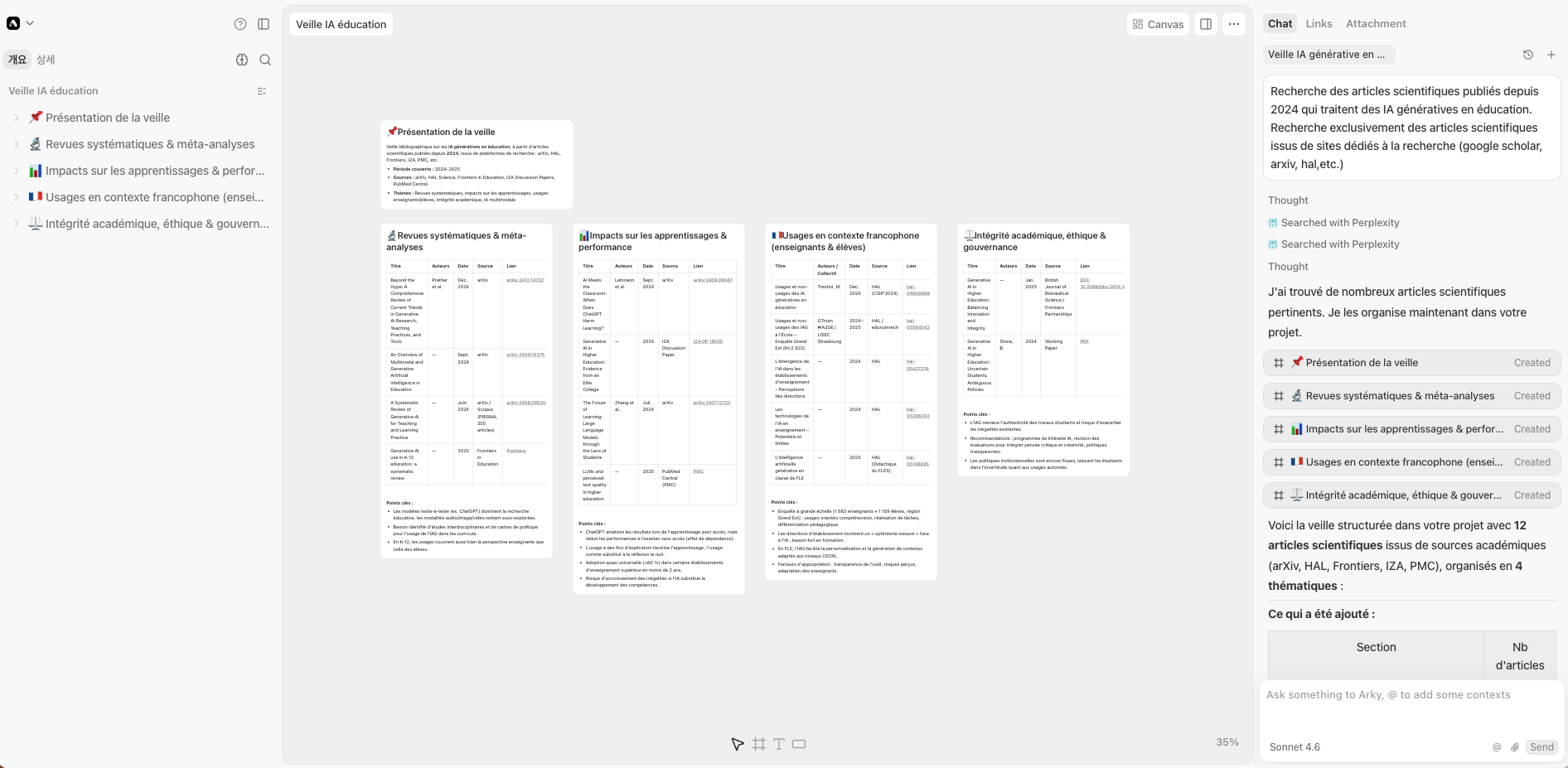 Arky (https://arky.so/) est un espace de travail visuel style tableau blanc infini combiné à un chatbot pour structurer un projet ou des idées.