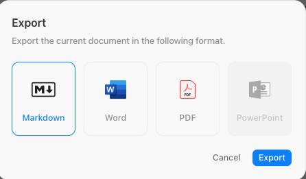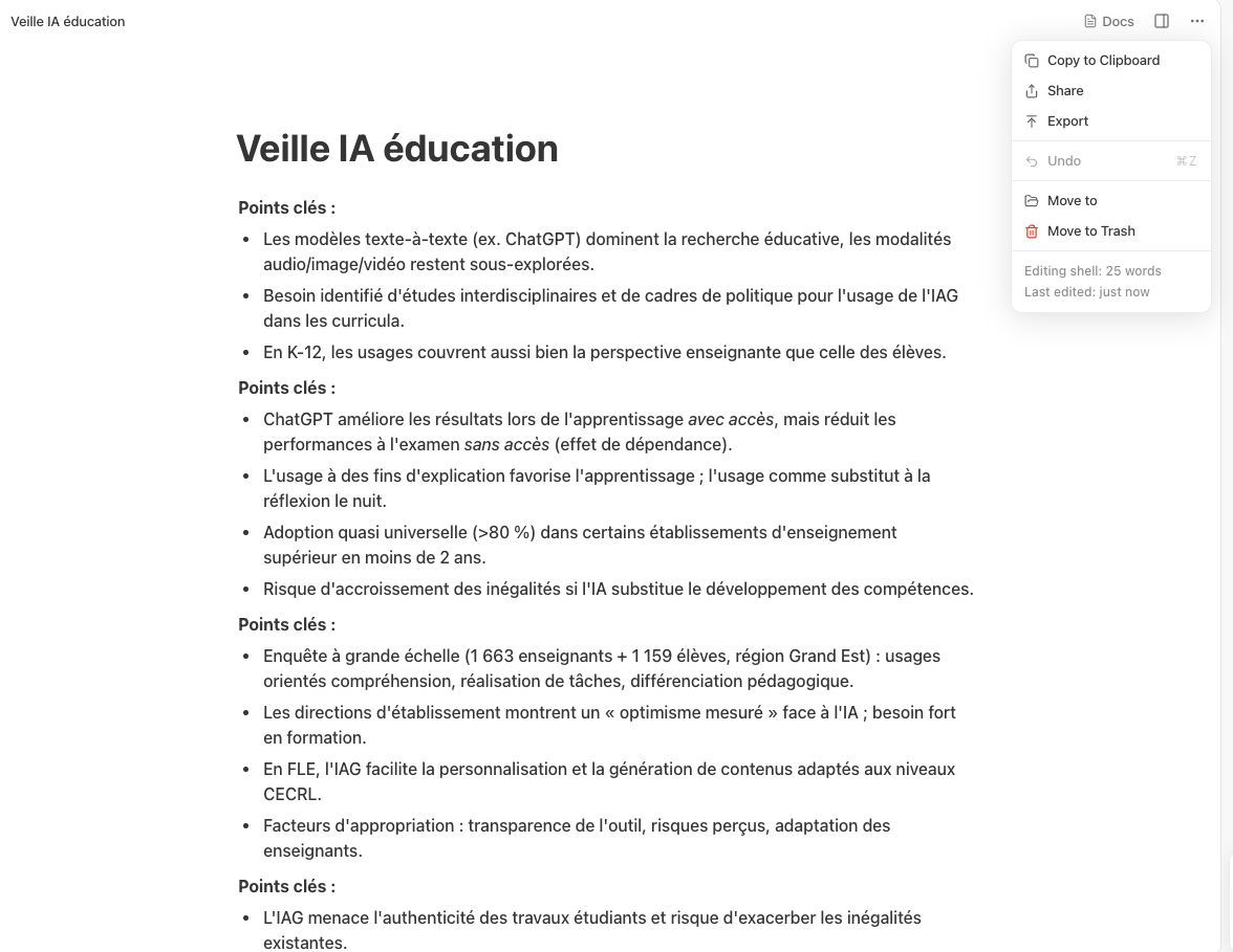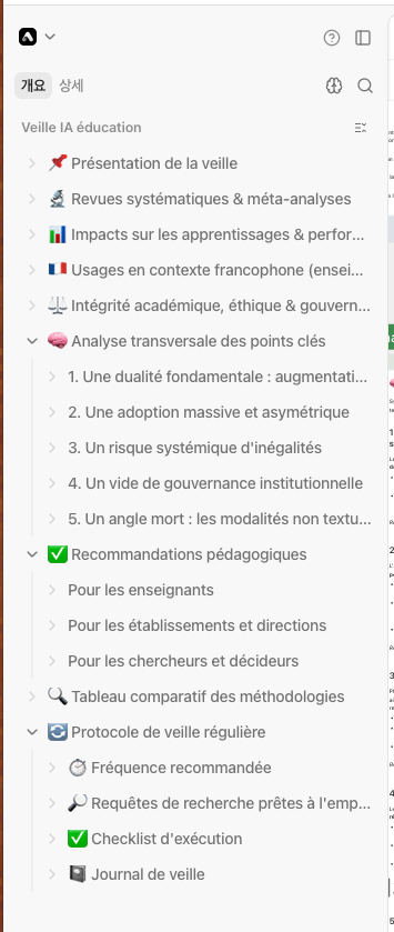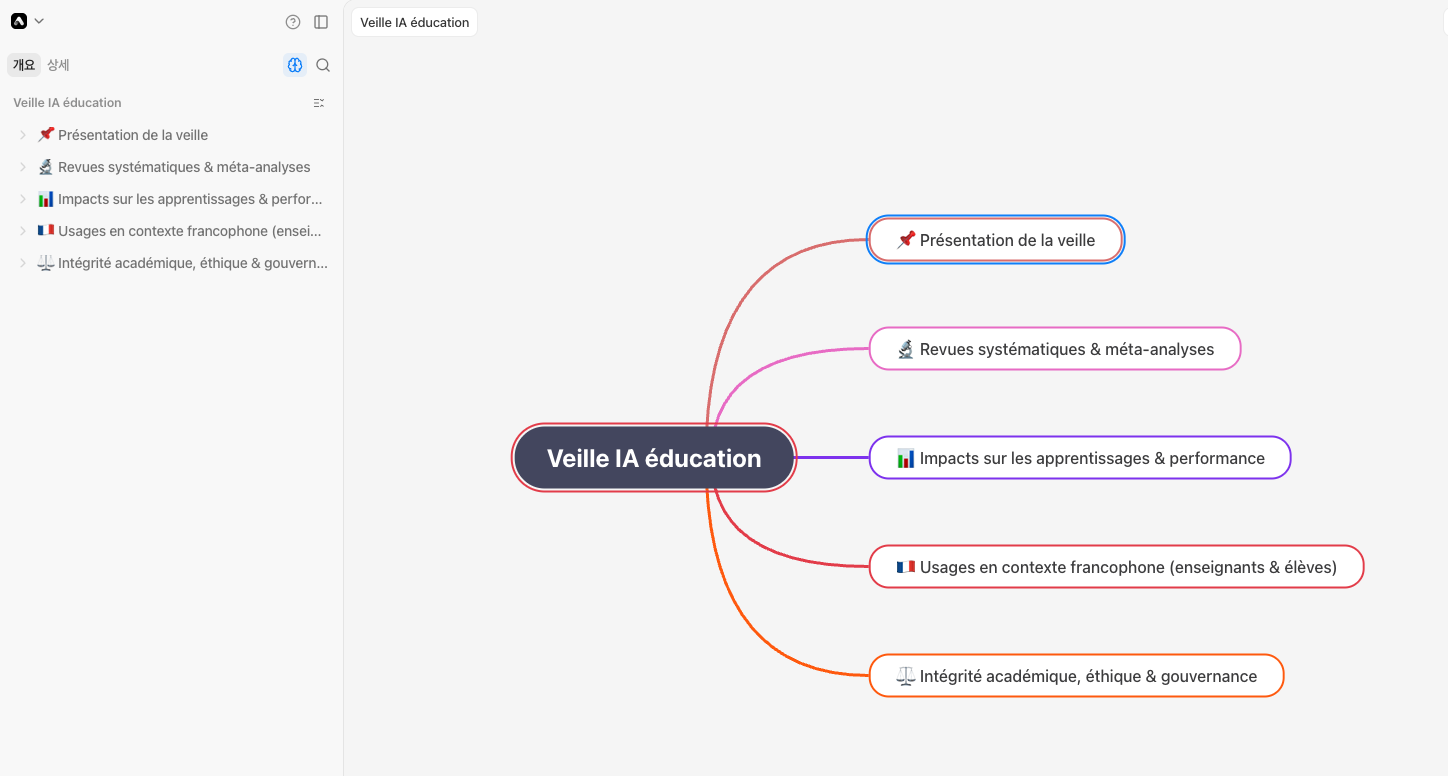 Le mode Focus centre sur un sous-sujet et le mode Mindmap propose l’architexcture sous forme de carte heuristique. Le mode docs permet la rédaction style traitement de texte avec export markdown, pdf ou word.