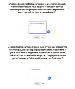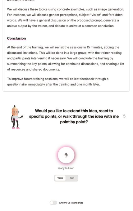 Brainstory (https://brainstory.ai) accompagne la réflexion par des questions sur un sujet donné, par écrit ou à l’oral retranscrit : l’IA « guide » par ses questions et synthétise l’échange. Partage pour feedback possible. Accepte le FR. 10 sujets gratuits.