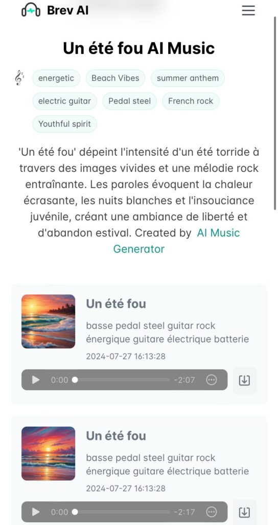 – avec requête : https://brev.ai/music/3256-un-%C3%A9t%C3%A9-fou…