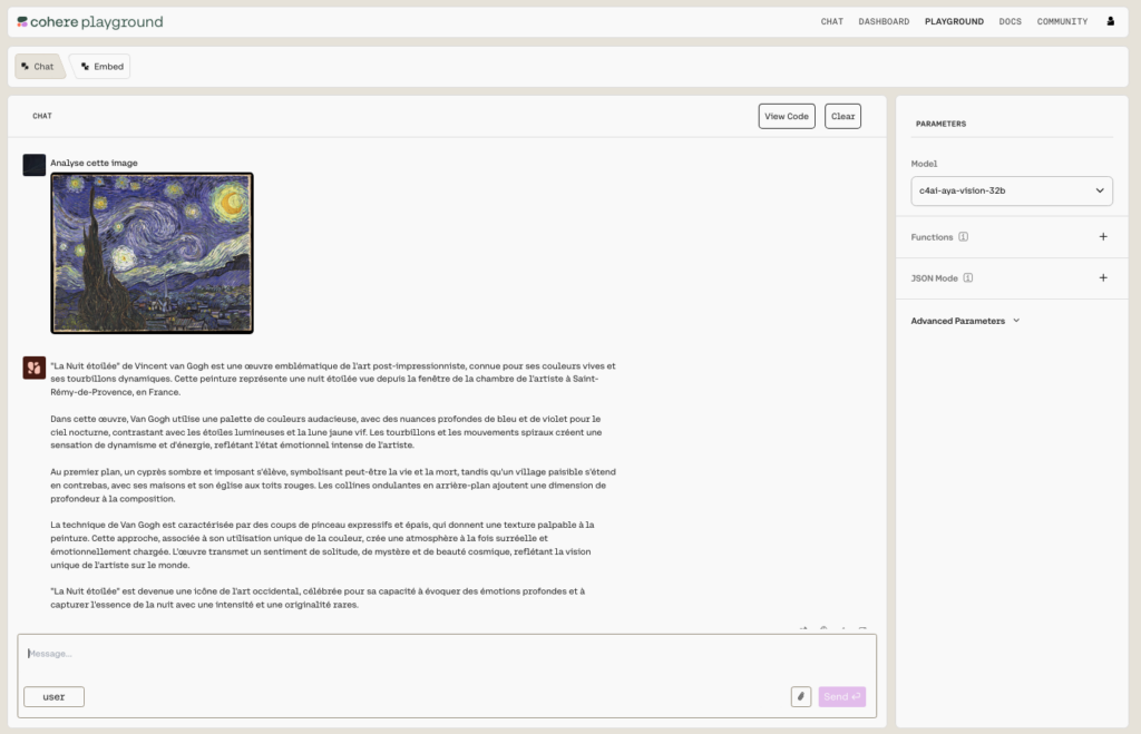 Aya de « Cohere For AI » (https://cohere.com/research/aya) : 3 modèles de langage et 2 d’analyse d’images issus d’un projet de recherche...