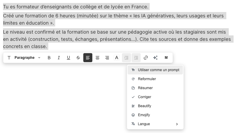 Docs (https://docs.numerique.gouv.fr) est un traitement de texte collaboratif avec des fonctionnalités d’IA générative : génération de texte à partir d’un...