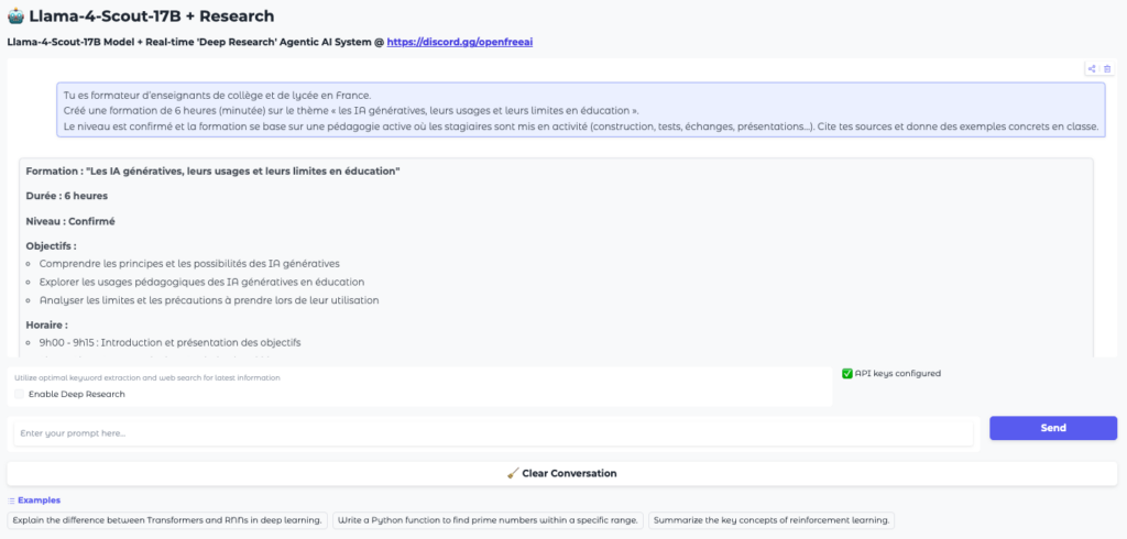 Llama Tutor (https://llamatutor.together.ai/ et documentation : https://github.com/Nutlope/llamatutor) est un chatbot basé sur Llama 3.1 configuré pour accompagner les apprentissages en...