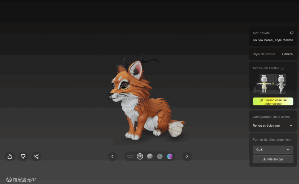Hunyuan 3D (https://3d.hunyuan.tencent.com. Open source, documentation : https://huggingface.co/tencent/Hunyuan3D-2) génère des modèles 3D avec texture depuis une instruction ou une image....
