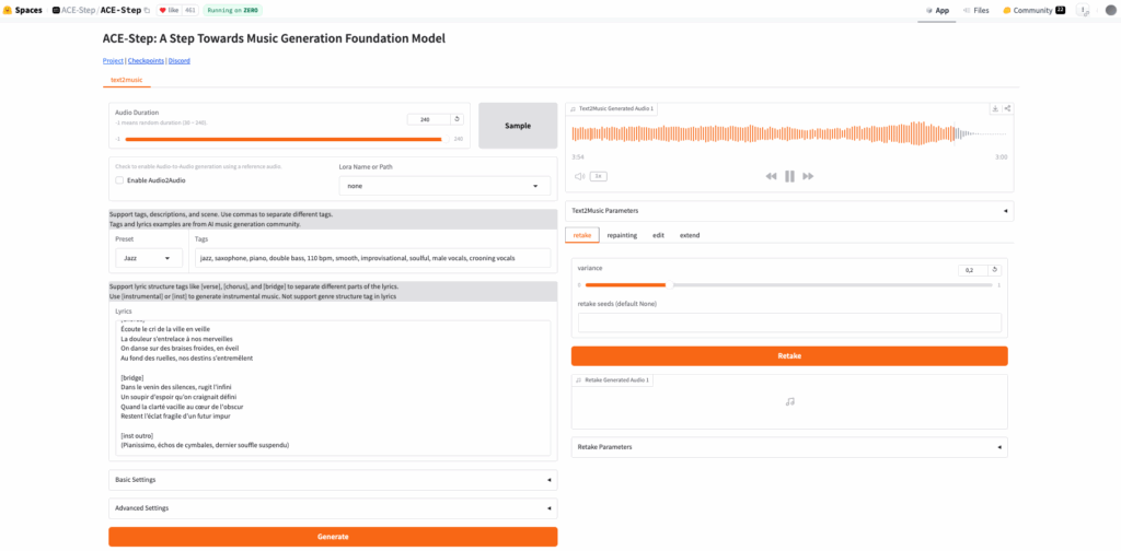 Ace-Step (https://huggingface.co/spaces/ACE-Step/ACE-Step) est un modèle de génération de musique open source (documentation : https://ace-step.github.io/).Génération à partir de paroles et de...