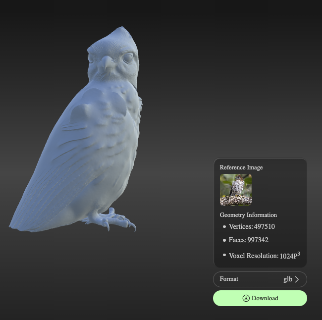 Sparc3D (disponible via https://hitem3d.ai/, documentation : https://lizhihao6.github.io/Sparc3D) est un modèle de génération d’images 3D à partir d’une image. Export glb,...