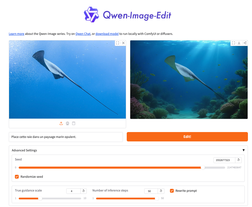 Qwen Image Edit (démonstration : https://huggingface.co/spaces/Qwen/Qwen-Image-Edit et documentation : https://huggingface.co/Qwen/Qwen-Image-Edit, également disponible sur Qwen Chat) modifie une image source à...