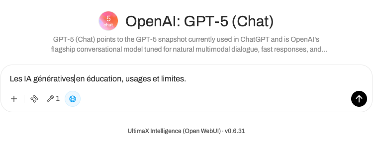 Umint (https://umint-openwebui.hf.space et documentation : https://huggingface.co/umint) pour UltimaX Intelligence est un chatbot regroupant modèles de langage et d’images (GPT, Deepseek, Gemma,...