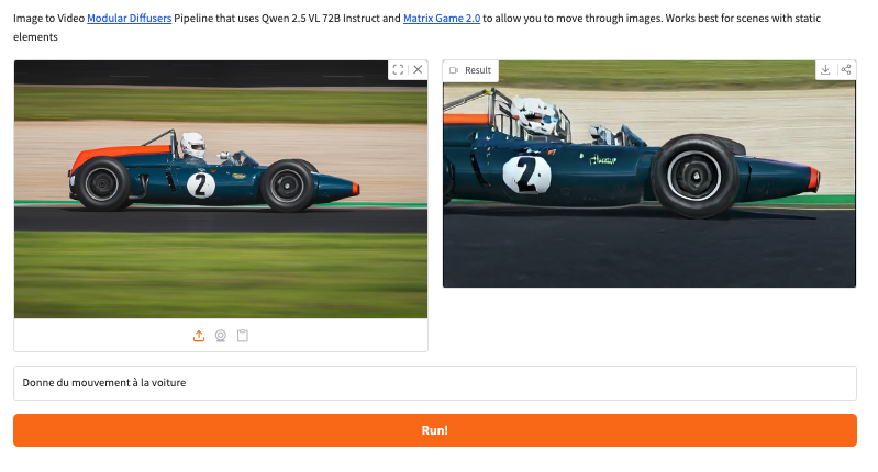 Matrix Game (documentation : https://matrix-game-v2.github.io/ et démonstration : https://huggingface.co/spaces/dn6/matrix-game-2) génére une vidéo avec mouvement à partir d’une image fixe et...