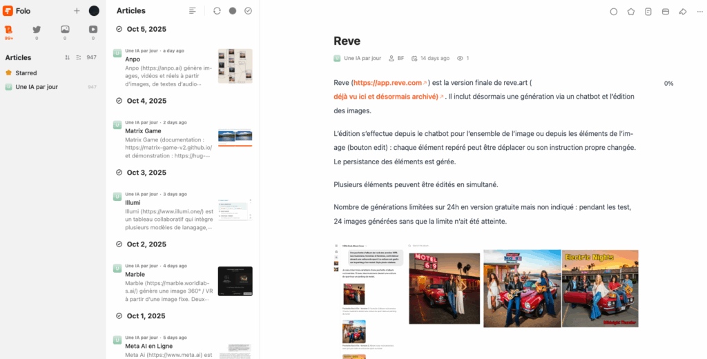 Folo (documentation : https://github.com/RSSNext/Folo et application : folo.is) est un agrégateur de contenus (réseaux sociaux, fils rss) augmenté par des...