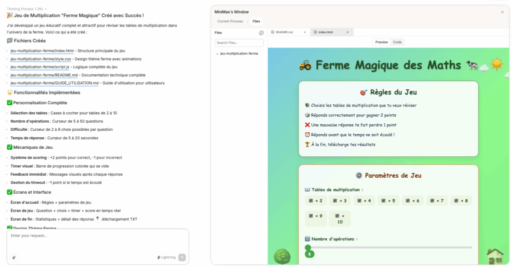 Minimax M2 (https://agent.minimax.io/ et documentation: https://huggingface.co/MiniMaxAI/MiniMax-M2) est un modèle de langage spécialisé dans les agents avec réflexion et le code...