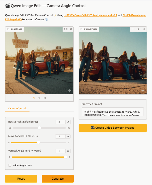 Qwen Image Edit Camera Angle Control (démonstration : https://huggingface.co/spaces/linoyts/Qwen-Image-Edit-Angles et documentation : https://huggingface.co/dx8152/Qwen-Edit-2509-Multiple-angles) génère des vues sous des angles différents...