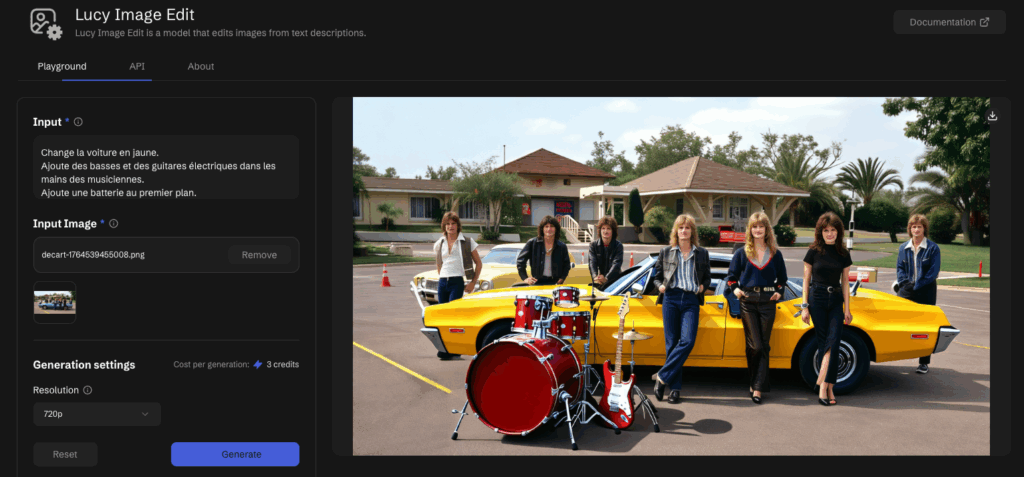 Lucy (https://platform.decart.ai/) est un ensemble de modèles de génération images et vidéo de Decart.ai : Export png et mp4. 800...