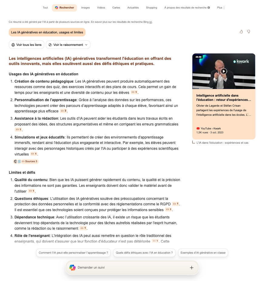 Copilot search (https://www.bing.com/copilotsearch) est le nouveau moteur de recherche IA de Microsoft : il fournit des réponses forunies en se...