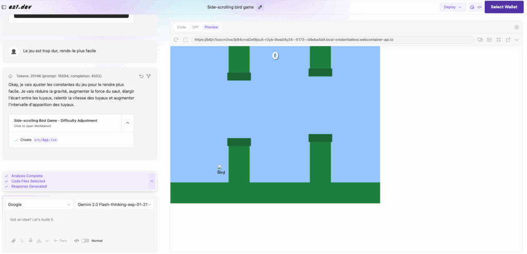 Ez1 (https://ez1.dev) génère des applications web à partir d’une instruction (code en html, json, vite et react). Amélioration des instructions...