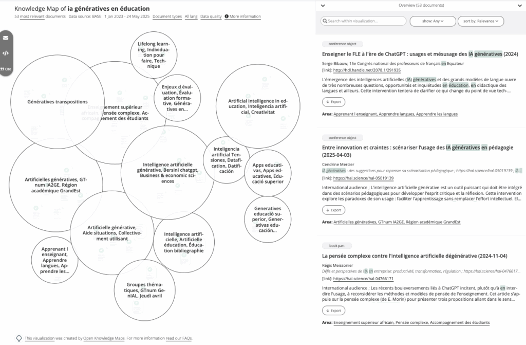 Open Knowledge Maps (https://openknowledgemaps.org/) génère une carte des connaissances scientifiques à partir d’un sujet donné en se basant sur les...