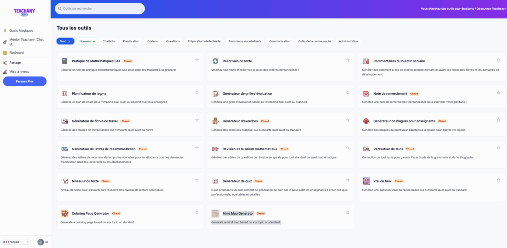 Teachany (https://www.teachany.com) regroupe des outils de génération pour l’enseignement : plan de cours, quiz, fiche de travail, grille dévaluation, coloriage,...