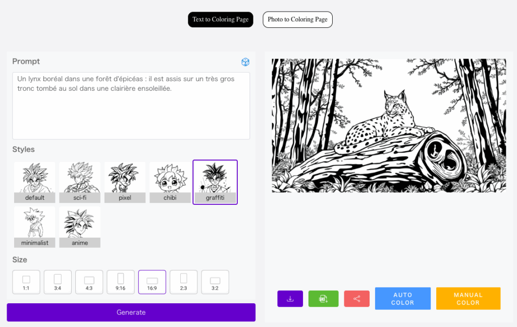 ColorifyAI (https://colorifyai.art) génère des dessins à colorier à partir d’une instruction ou d’une image. Plusieurs styles et formats proposés.Export png...
