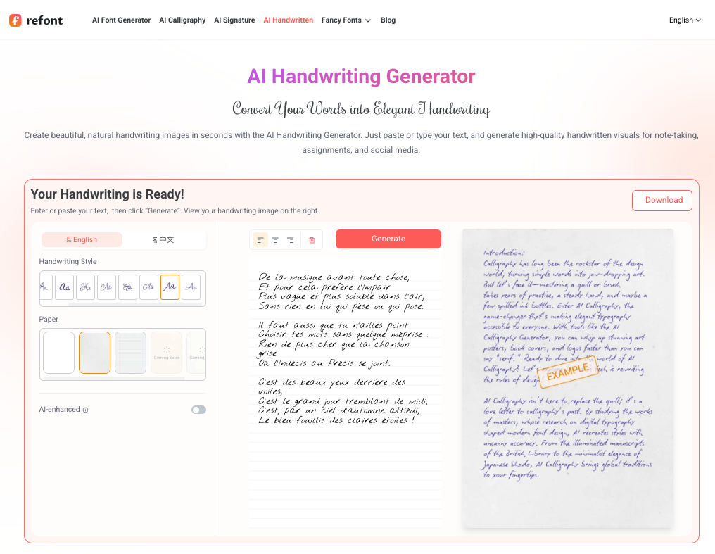 Refont (https://refont.ai/) génère du texte donné en images à partir d’un texte donné. Plusieurs types de générations sont proposées :...