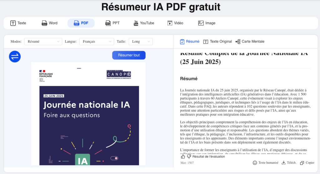Summarizer de Decopy (https://decopy.ai/fr/summarizer/) résume des documents (txt, pdf, ppt, doc, vidéos et images) en 3 longueurs (court, moyen et...