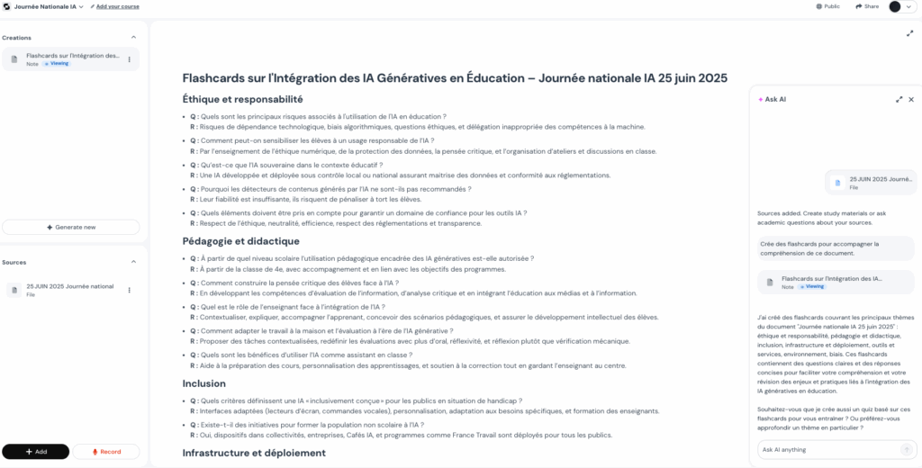 Cerebella (https://cerebellaapp.com) génère des flashcards que des sujets éducatifs avec répétition, suivi des apprentissages programmé sur la durée via des...