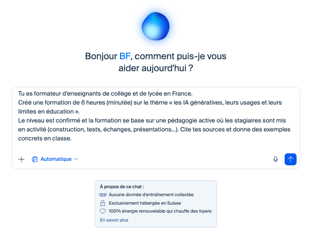Euria (https://euria.infomaniak.com) est un chatbot basé sur Mistral, Llama, Qwen et Whisper pour la voix, opéré par Infomaniak (Suisse). Analyse...
