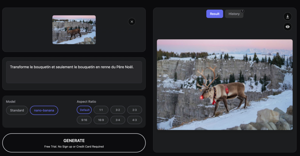 AI Image to image (https://aiimagetoimage.io/) transforme une image chargée à partir d’une instruction. Deux modèles proposés, standard et Nano Banana,...