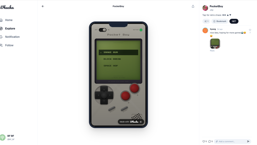 Wacka (https://whacka.app) génère des applications au format mobile disponibles en ligne à partir d’une instruction et d’un chatbot. Pas d’export...